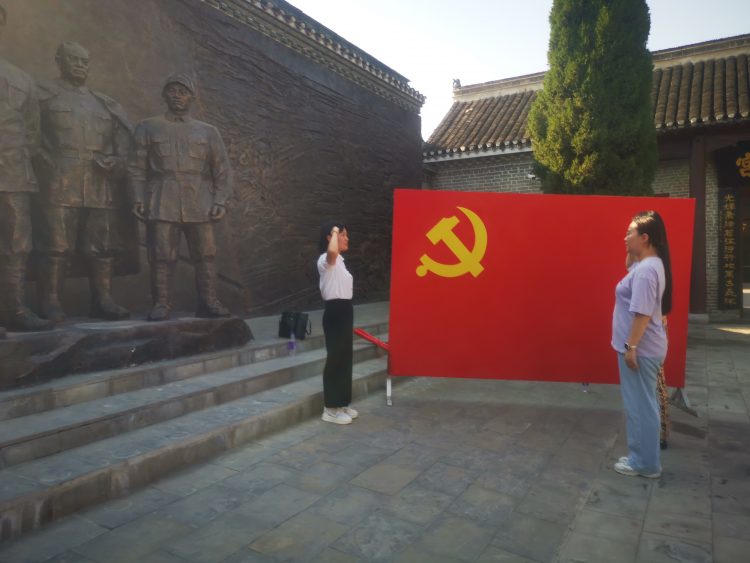 黨員們面對(duì)淮海戰(zhàn)役英勇?tīng)奚膽?zhàn)士照片前駐足默哀,向革命先烈們敬禮!在總前委銅塑雕像前新黨員們莊嚴(yán)宣誓,老黨員重溫入黨初心!在黨的領(lǐng)導(dǎo)人題詞的烈士紀(jì)念碑前久久凝視,不忍離去!