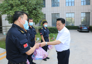 在送清涼活動中,保安公司一線職工無懼酷暑環(huán)境,堅守在自己的工作崗位上,默默付出,盡職履責。周開宇對烈日下工作的職工給予了高度贊揚,將關(guān)愛送到大家的心坎上,并叮囑大家在做好疫情防控工作的同時做好防暑降溫工作,注意勞逸結(jié)合,確保各項工作的安全運行。