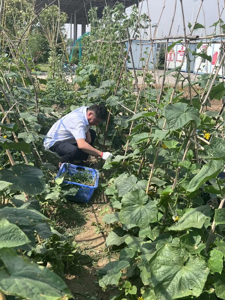 活動現(xiàn)場,天氣雖然炎熱但擋不住黨員勞動的熱情,領(lǐng)取了勞動工具后,分工協(xié)作,按照分配好的耕作區(qū)域開始認(rèn)真勞作,清理站內(nèi)綠化草坪并按照要求進行分類投放,清理的雜草作為站內(nèi)飼養(yǎng)牲畜的飼料,做到物盡其用,采摘下來的蔬菜水果作為食堂食材,不僅豐富了職工的“菜盤子”,還降低了收費站食堂運營成本。