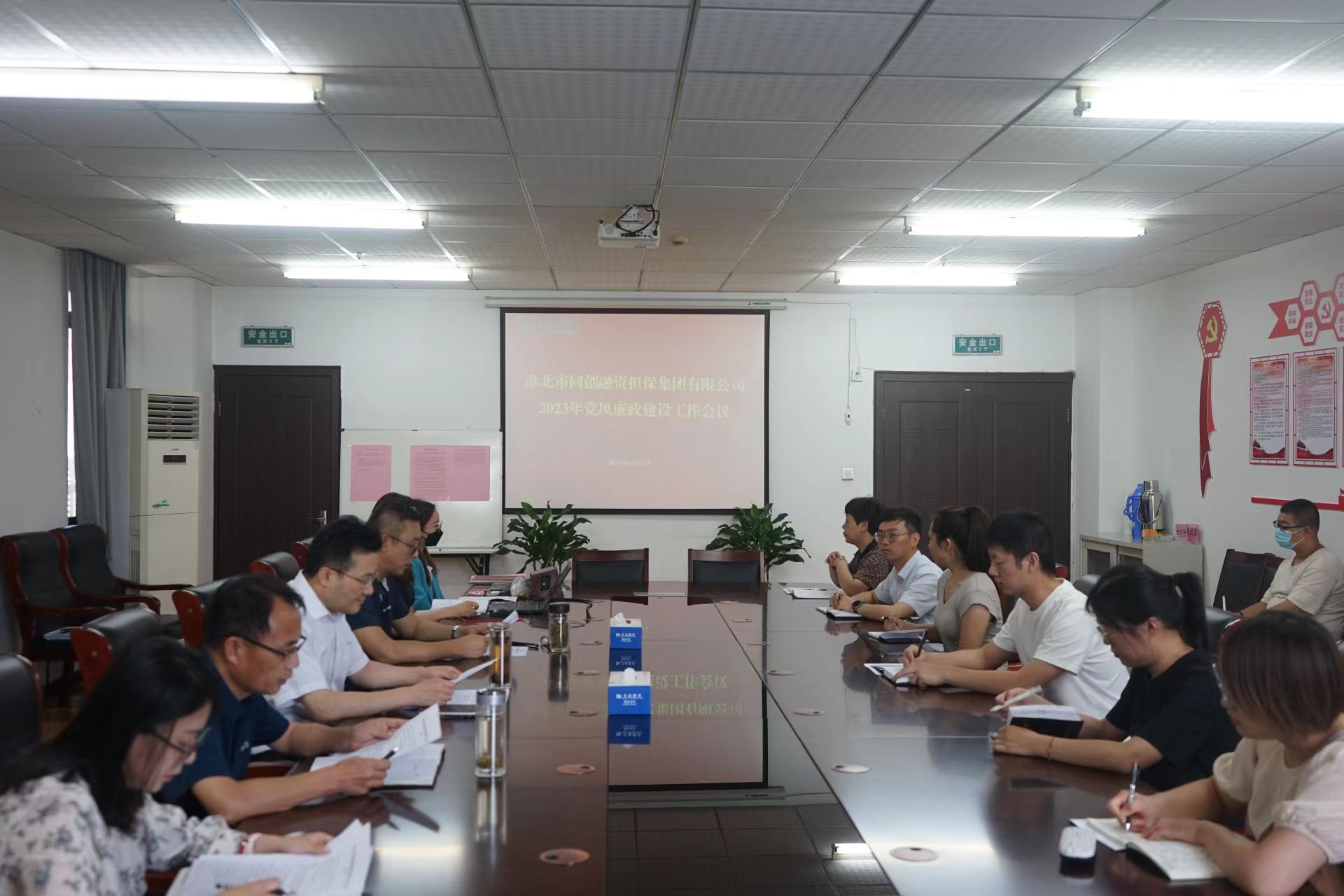 6月27日下午,同創(chuàng)擔保公司召開2023年黨風廉政建設(shè)工作會議,集團公司總經(jīng)理助理朱濤、公司班子成員、紀檢組臨時負責人戴詩卉及公司全體員工參加會議。
