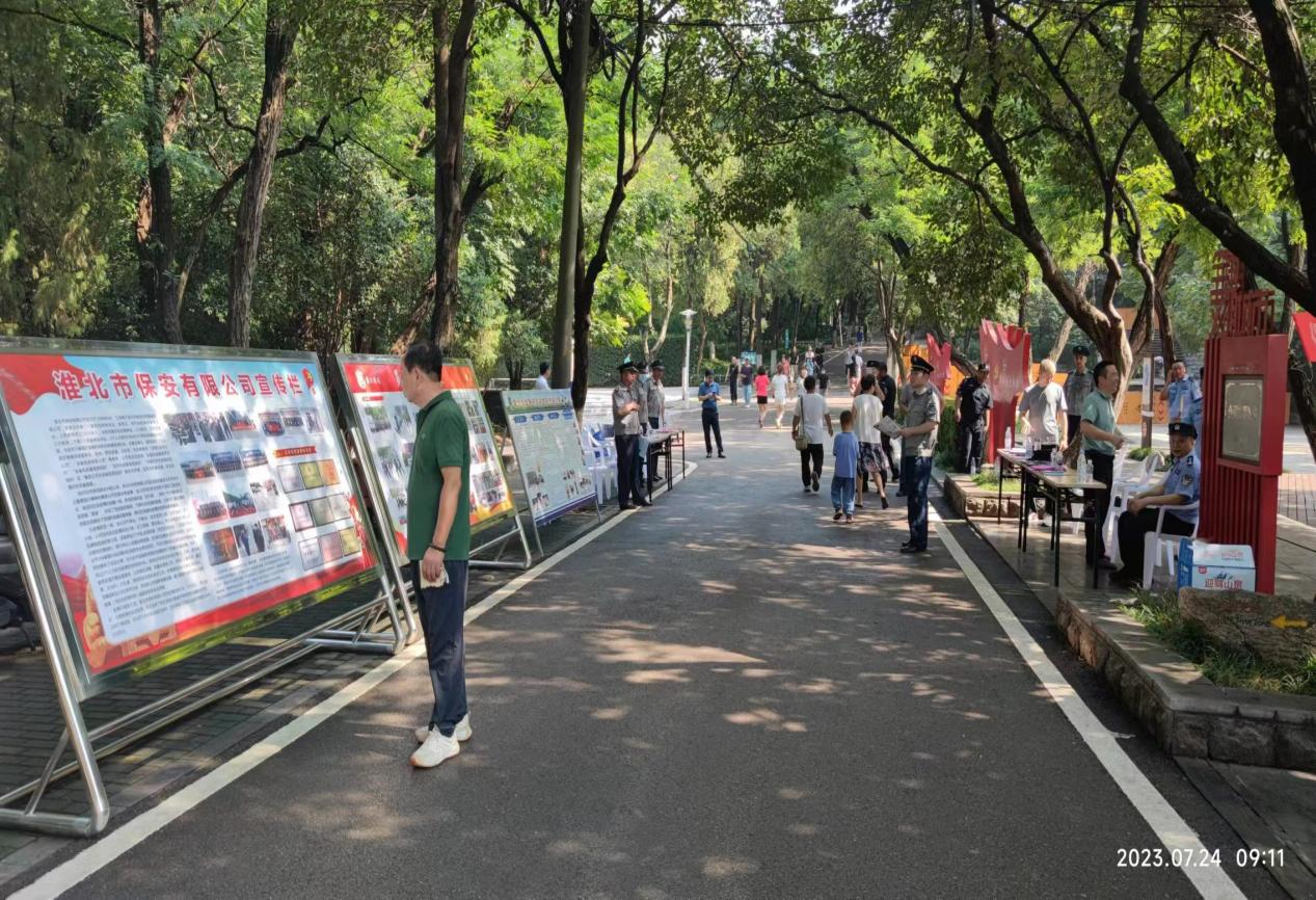 7月24日上午,為廣泛宣傳保安行業(yè)在維護社會和諧穩(wěn)定、保障人民安居樂業(yè)、促進經(jīng)濟社會發(fā)展等方面取得的成效。淮北市保安監(jiān)管支隊、淮北市保安有限公司在相山公園組織開展以“保安心向黨、護航新征程”為主題的保安行業(yè)宣傳活動。市保安監(jiān)管支隊支隊長孫兆良、政委曹輝、公司總經(jīng)理吳信威、押運人防隊員等13人參加了宣傳活動。