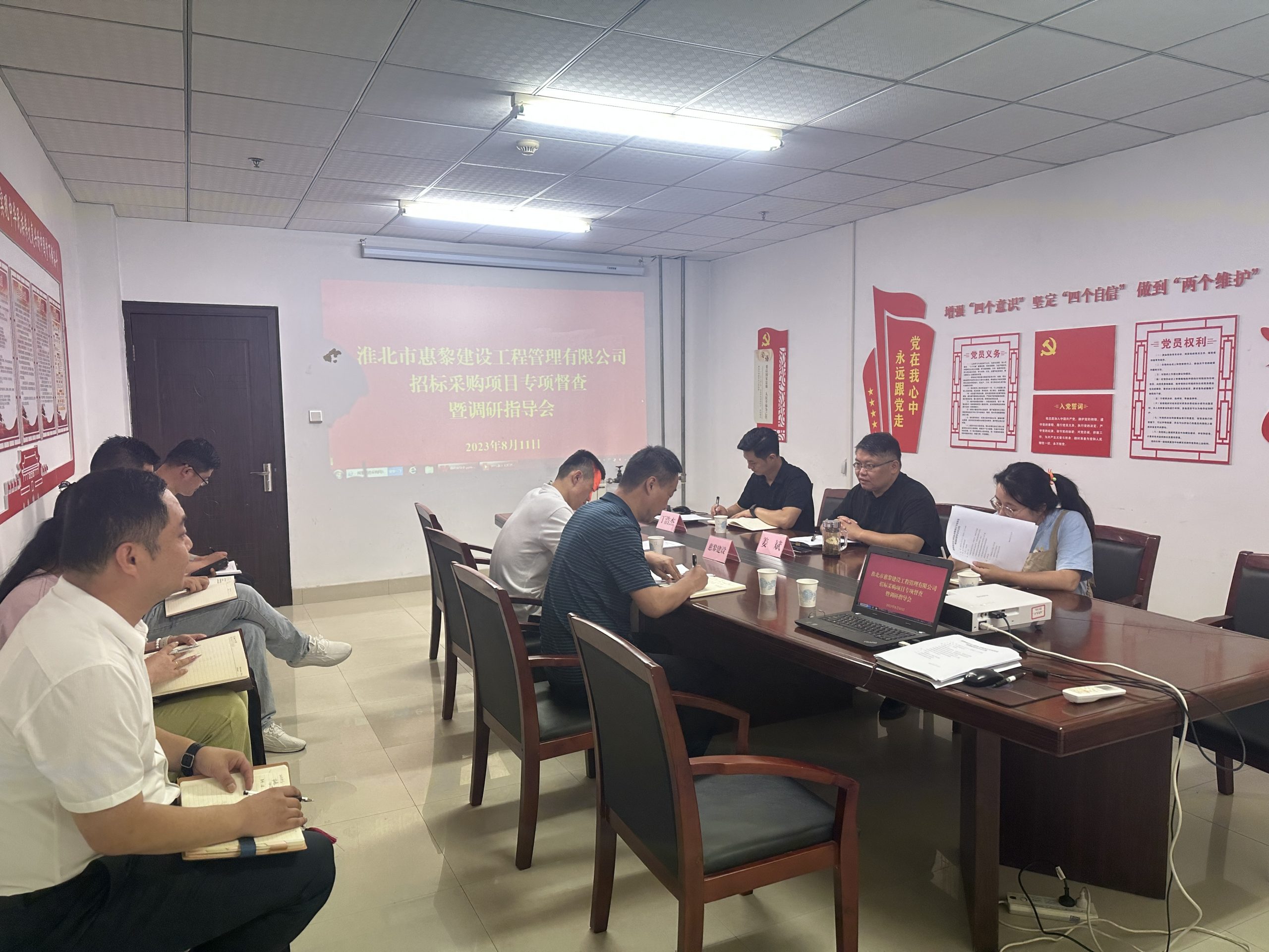 8月11日上午,市建投集團(tuán)黨委委員、紀(jì)委書(shū)記、監(jiān)察專(zhuān)員姜斌一行到淮北市惠黎建設(shè)工程管理有限公司調(diào)研指導(dǎo)工作。姜斌一行實(shí)地查看了惠黎建設(shè)公司的辦公場(chǎng)所、開(kāi)評(píng)標(biāo)場(chǎng)所和招標(biāo)代理業(yè)務(wù)的相關(guān)資料,惠黎建設(shè)主要負(fù)責(zé)人匯報(bào)了公司今年以來(lái)的業(yè)務(wù)發(fā)展情況和下一步工作打算。參會(huì)的集團(tuán)公司紀(jì)委工作人員就風(fēng)險(xiǎn)管控、提質(zhì)增效、精細(xì)化管理等方面給予指導(dǎo)。