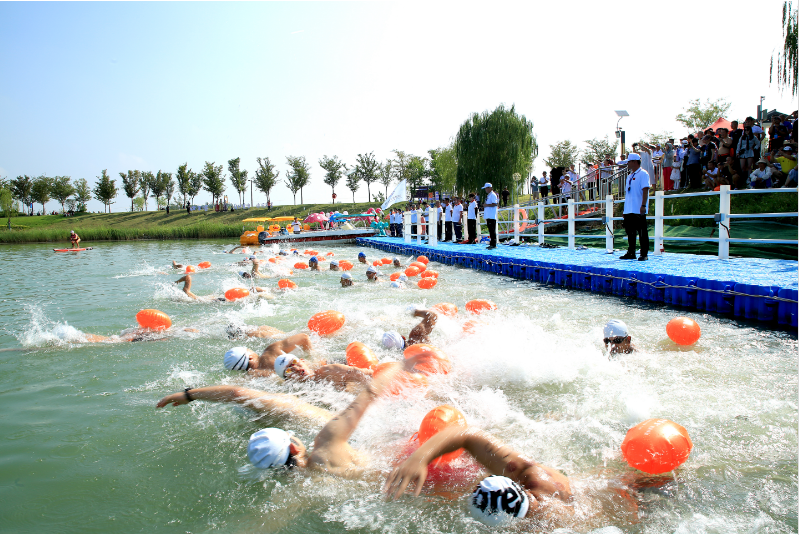 為貫徹落實(shí)全民健身國家戰(zhàn)略,推動(dòng)長三角群眾體育一體化發(fā)展,宣傳“煤美與共,湖上淮北”城市形象,大力實(shí)施快樂健身行動(dòng),促進(jìn)體育與文化、旅游深度融合,推廣普及公開水域游泳運(yùn)動(dòng)。8月20日上午,由淮北市文化旅游體育局主辦,淮北市游泳協(xié)會(huì)、淮北市建投文旅集團(tuán)共同承辦,淮北市南湖公園協(xié)辦的“2023口子窖首屆長三角公開水域游泳邀請(qǐng)賽”在綠金湖鳴哨開賽。