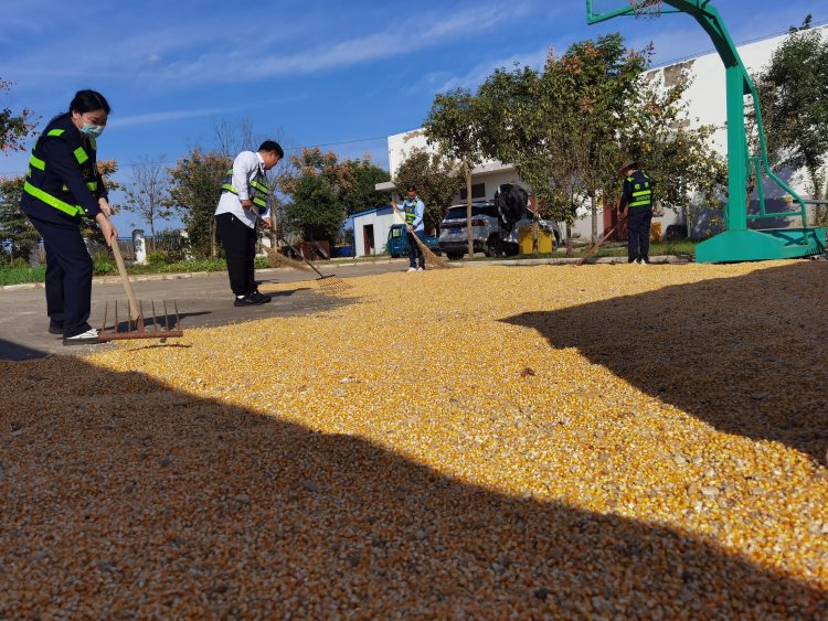時(shí)下正值秋收時(shí)節(jié),然而對(duì)于收費(fèi)站周邊許多村民來(lái)說(shuō),豐收的喜悅卻被曬谷場(chǎng)的不足所抵消。剛收割的玉米、大豆等谷物都需要及時(shí)晾曬,以防長(zhǎng)芽、受潮等現(xiàn)象,否則將大大影響收成。2023年10月8日,在了解到這一問(wèn)題后,融通黨支部副書(shū)記、副總經(jīng)理武肖東主動(dòng)聯(lián)系村部領(lǐng)導(dǎo),積極提供場(chǎng)地為周邊村民解決曬糧難題。