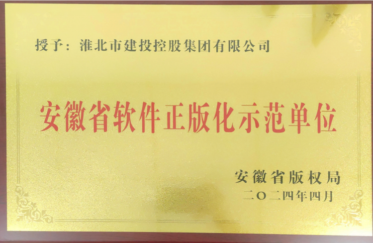 2024年4月2日安徽省版權(quán)局下發(fā)了《關(guān)于公布2023年度安徽省版權(quán)示范創(chuàng)建認定名單的通知》,認定淮北市建投控股集團有限公司等16家單位為“安徽省軟件正版化示范單位”。