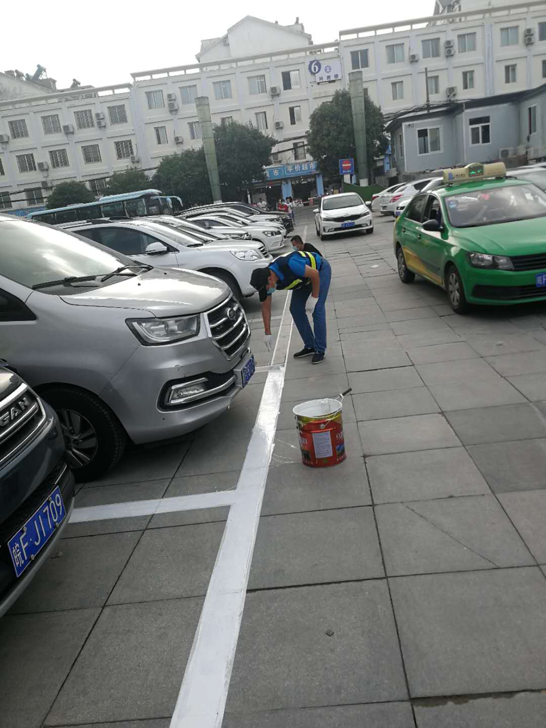 助力創(chuàng)建全國文明城市,城泊公司員工用汗水施劃停車泊位線