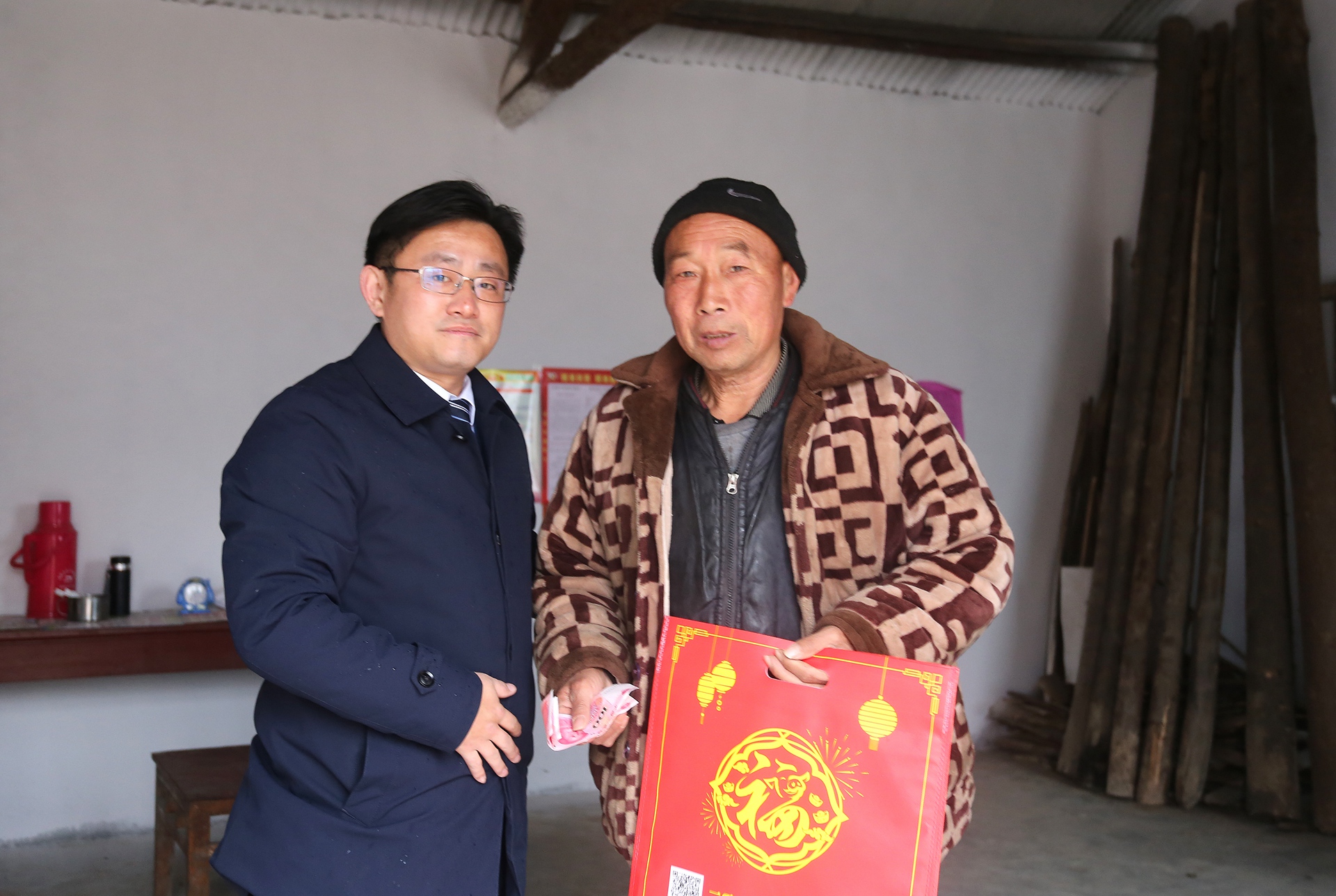 春節(jié)將至,年味漸濃。在新春佳節(jié)來(lái)臨之際,市建投集團(tuán)黨委委員、副總經(jīng)理王佩劍帶領(lǐng)扶貧5組成員前往火神廟村走訪看望貧困戶丁佩久和黃傳平家庭,并為幫扶貧困戶送去春節(jié)慰問金和春聯(lián),提前送上新春佳節(jié)的問候與祝福。王佩劍每到一戶,都熱情的與他們拉家常,詳細(xì)詢問他們的身體情況、生產(chǎn)和生活現(xiàn)狀,認(rèn)真傾聽他們的訴求,叮囑他們一定要保重身體,鼓勵(lì)他們健康生活、快樂勞動(dòng)。