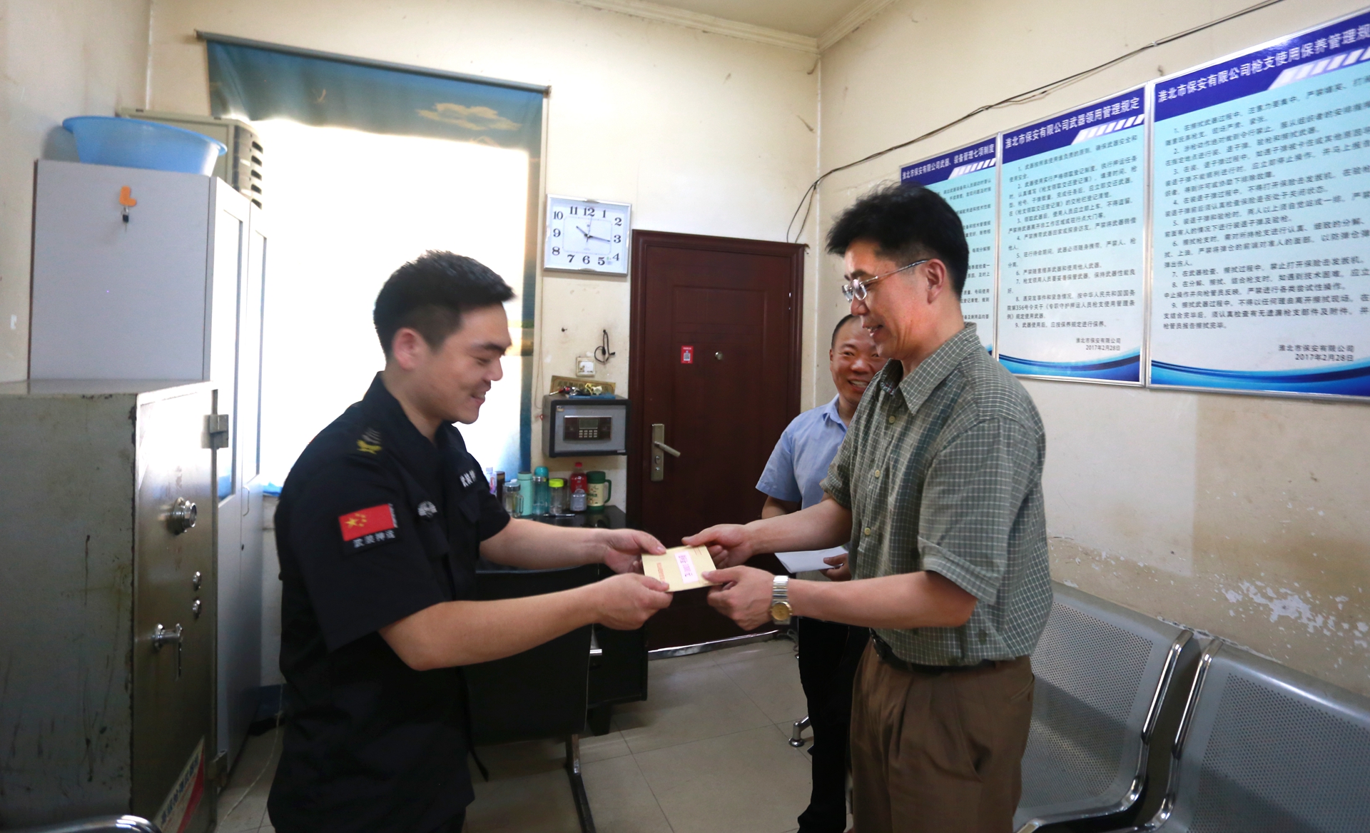 為了讓貧困黨員感受到集團(tuán)公司大家庭的關(guān)懷和溫暖,7月13日上午,集團(tuán)公司黨委委員、紀(jì)委書記王獻(xiàn)忠和法律部副部長(zhǎng)余永明來(lái)到保安公司押運(yùn)一中隊(duì),為貧困黨員送去慰問(wèn)金和祝福。