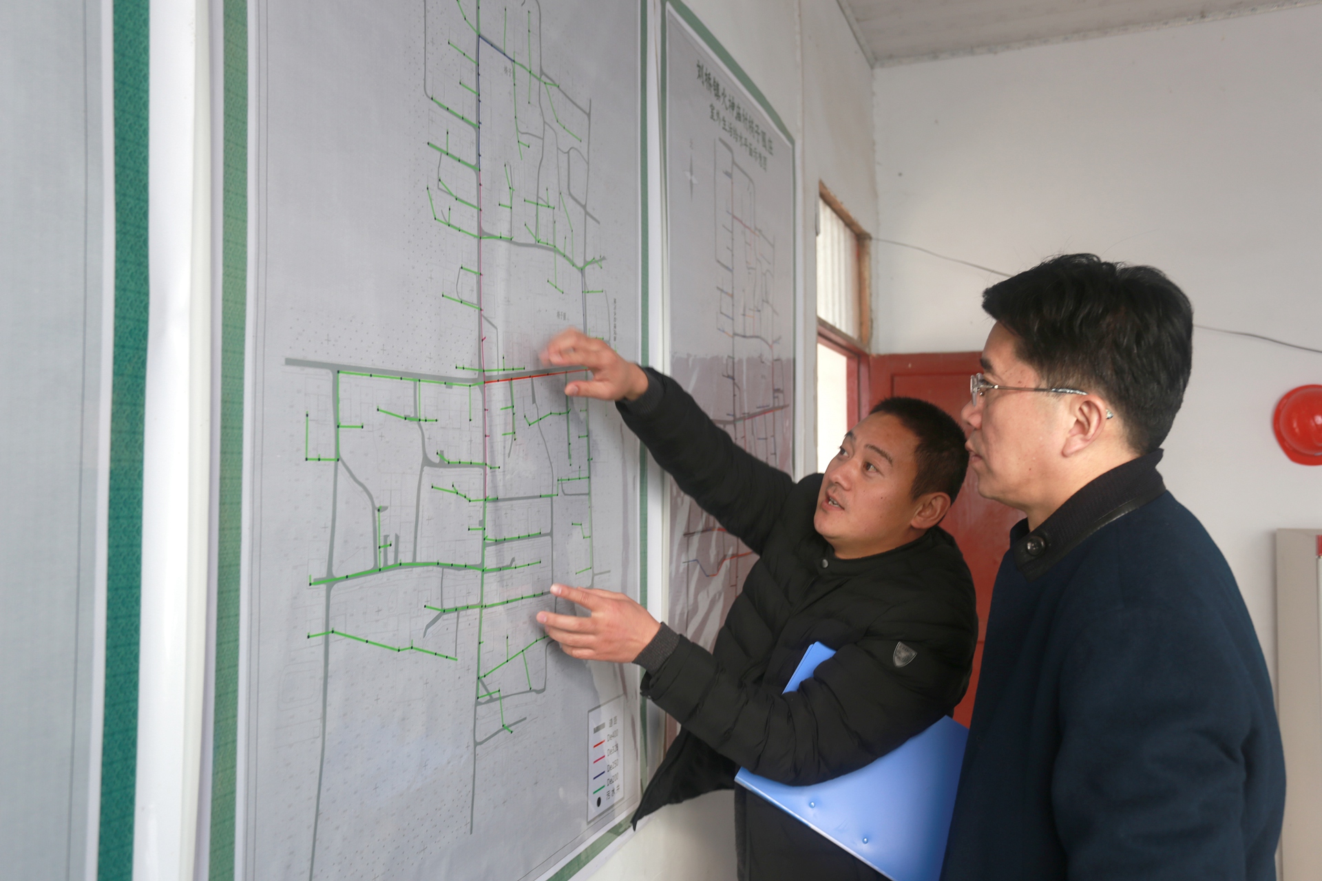 王獻(xiàn)忠現(xiàn)場查看了椅子圈莊給排水廁改工程規(guī)劃施工圖,實(shí)地勘察工程進(jìn)展情況。與村干部、施工單位、監(jiān)理交流了解工程質(zhì)量、時間節(jié)點(diǎn),詳細(xì)詢問項(xiàng)目落實(shí)過程中的困難和問題,現(xiàn)場交辦解決問題。