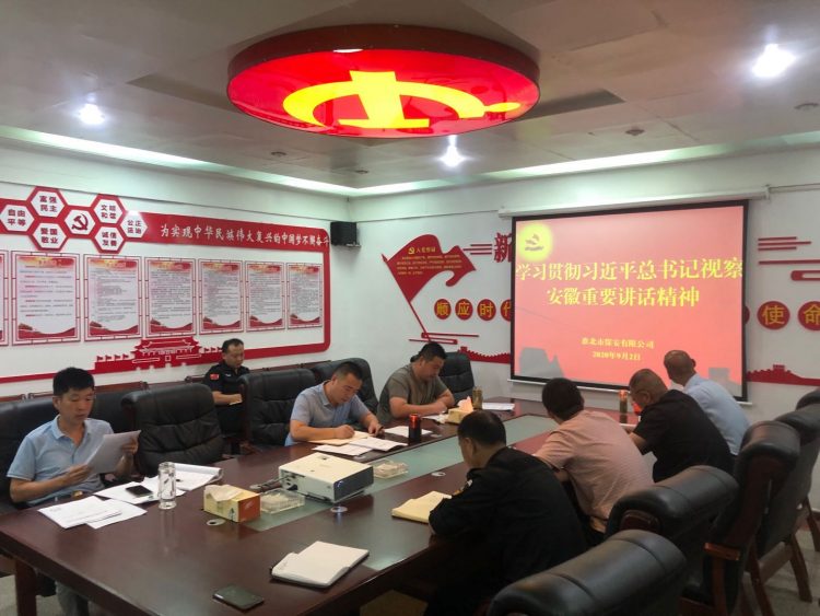 會(huì)議要求, 公司各部門、中隊(duì)采取多種形式組織學(xué)習(xí)貫徹,把學(xué)習(xí)習(xí)近平總書記考察安徽重要講話指示精神與學(xué)習(xí)貫徹習(xí)近平新時(shí)代中國特色社會(huì)主義思想結(jié)合起來;與學(xué)習(xí)貫徹《習(xí)近平談治國理政》第三卷結(jié)合起來,切實(shí)做到入腦入心、篤信篤行。緊緊圍繞習(xí)近平總書記考察安徽重要講話指示中明確的重點(diǎn)任務(wù)聚力用勁,立足保安工作職能,堅(jiān)持穩(wěn)中求進(jìn)工作總基調(diào),堅(jiān)持高質(zhì)量轉(zhuǎn)型發(fā)展,確保習(xí)近平總書記重要講話精神落地生根、開花結(jié)果。