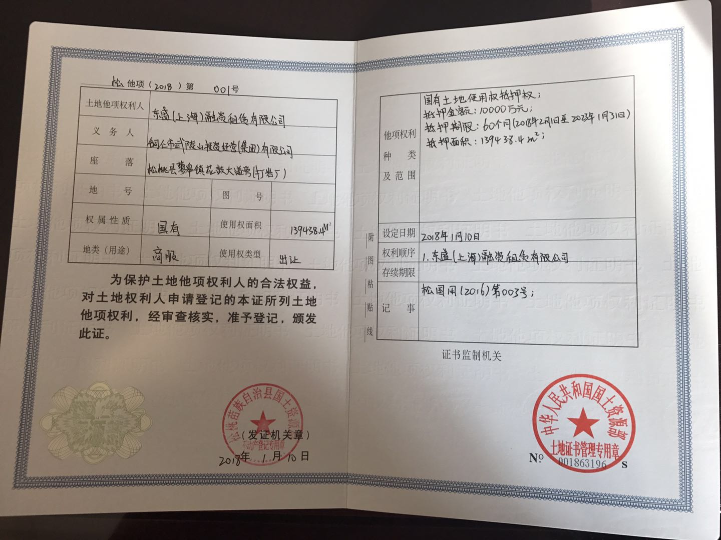 1月12日上午在盡調(diào)人員的不懈努力下,松桃縣人民醫(yī)院院長順利的簽訂了融資租賃合同及醫(yī)療設(shè)備所有權(quán)轉(zhuǎn)讓協(xié)議,緊接著盡調(diào)人員趕往松桃苗族自治縣不動產(chǎn)中心,在武投公司相關(guān)工作人員的配合下,對松桃縣打鹽場附近價值2億元的土地辦理了土地抵押手續(xù)。