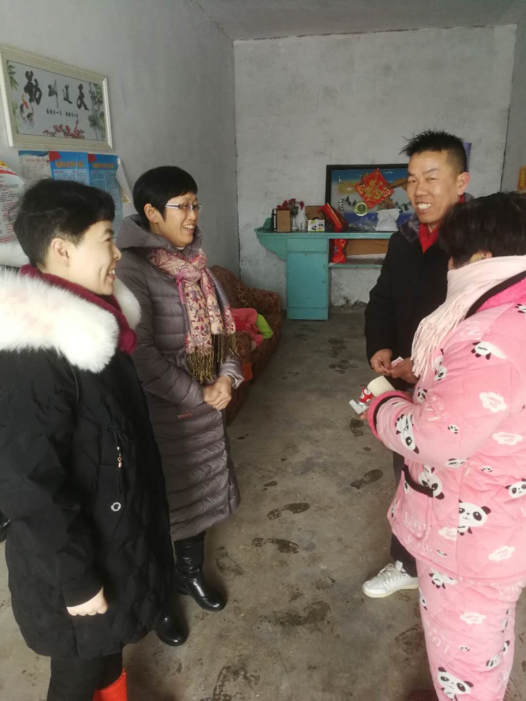 1月31日下午,市建投集團扶貧工作第七組成員王玉麗、李娟娟同志冒著紛紛大雪,帶著集團公司領(lǐng)導(dǎo)的新春祝福前往濉溪縣劉橋鎮(zhèn)火神廟村貧困戶戴鳳英及劉杰家中進行走訪慰問活動?;顒又校瑤头鲂〗M成員為兩家送去慰問金,并與其親切交談,噓寒問暖。詳細詢問了他們的身體情況及生活現(xiàn)狀,鼓勵其來年積極謀求致富之路,爭取早日脫貧致富。大雪皚皚,送去的是關(guān)懷,溫暖的是人心,在此春節(jié)來臨之際,他們特別感謝市建投集團一年來的關(guān)心和幫扶。