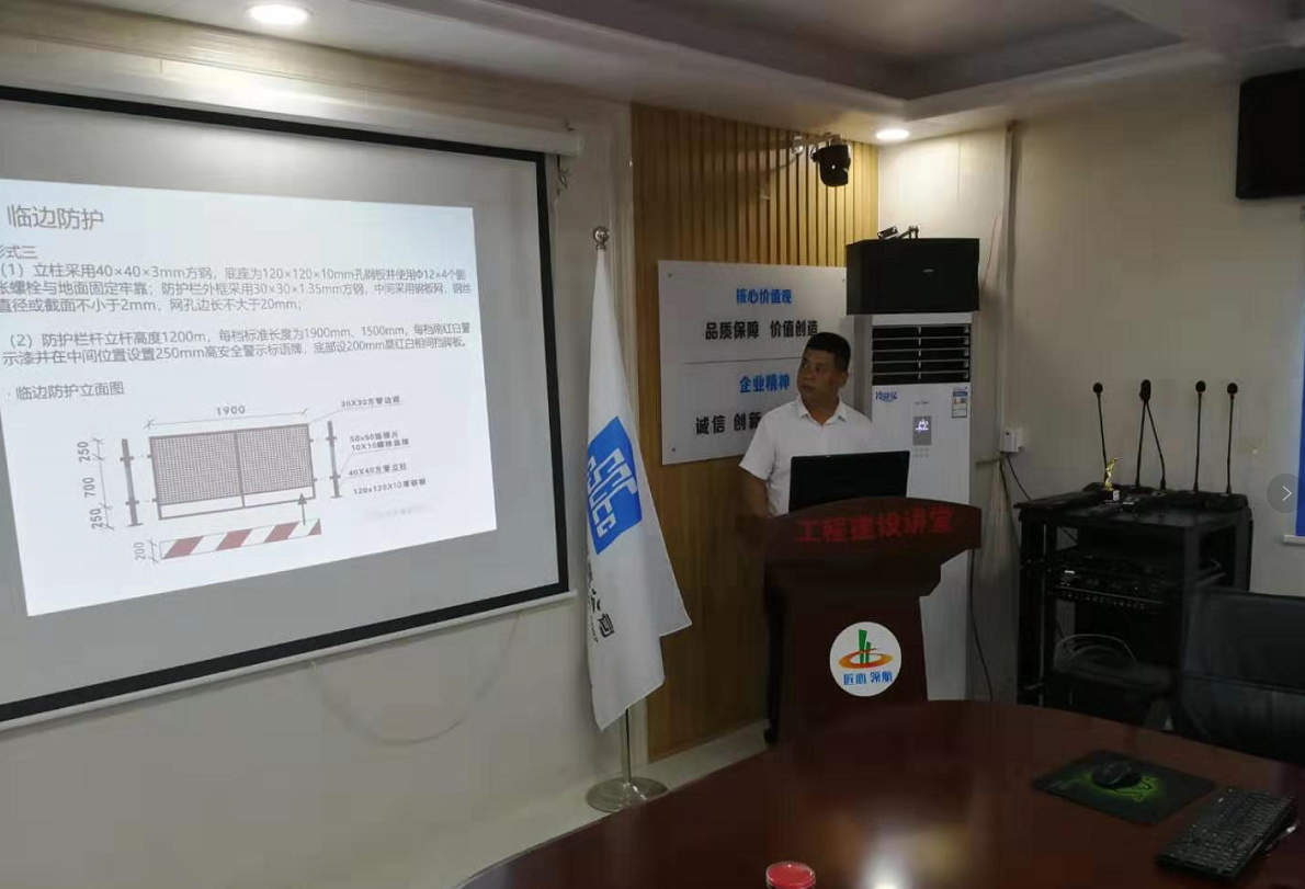 “施工安全是我們工程建設(shè)一切工作的基礎(chǔ),我們一定要擺正各種關(guān)系,真正做到人人講安全,時(shí)時(shí)講安全,事事講安全,杜絕一切違章現(xiàn)象……”這是房地產(chǎn)公司在7月15日黨建品牌系列之“工程建設(shè)講堂”第一課《安全防護(hù)篇》的開(kāi)講白。