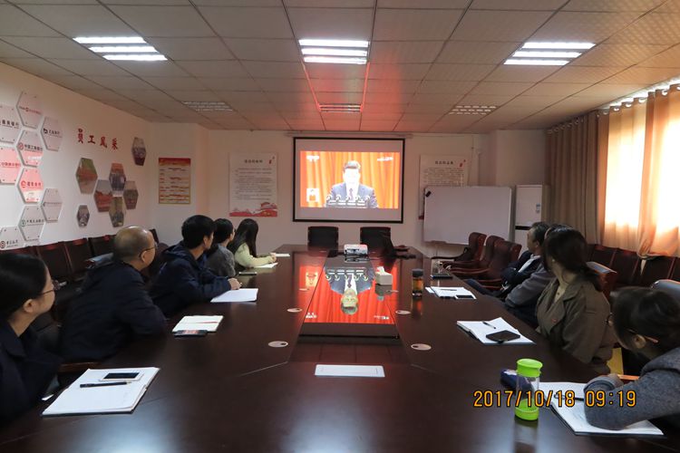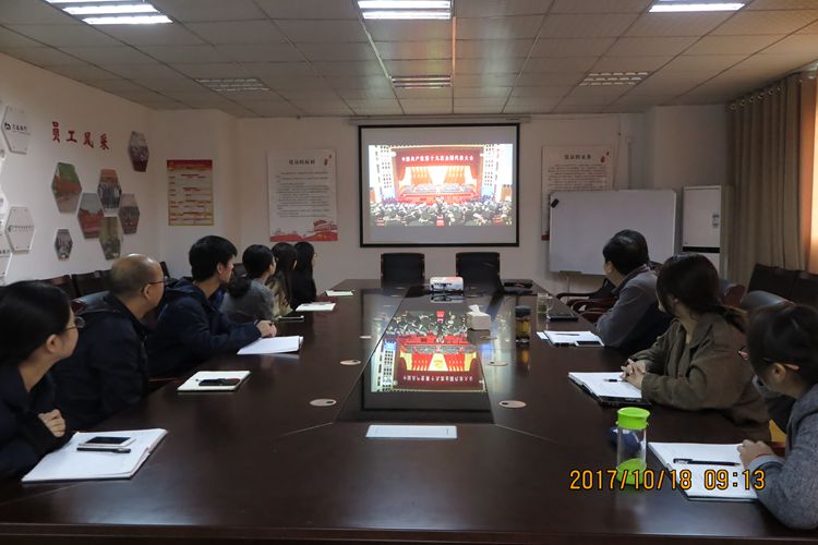 2017年10月18日上午9:00,中國共產黨第十九次全國代表大會在北京開幕?;幢笔型瑒?chuàng)融資擔保集團有限公司黨支部全體黨員干部在會議室集中收看會議實況直播,認真聆聽、學習習近平總書記代表十八屆中央委員會向大會所作的報告。