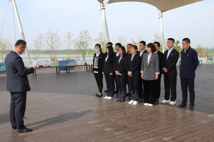 4月27日,融通黨支部組織黨員及支部新發(fā)展的黨員前往綠金湖圓夢島舉行了莊嚴(yán)而隆重的黨員宣誓活動。在融通黨支部副書記馬振林的帶領(lǐng)下,支部3名新發(fā)展黨員面對黨旗莊嚴(yán)宣誓,短短一百多字的誓言是他們對黨的承諾,是他們一生銘記的宣言。